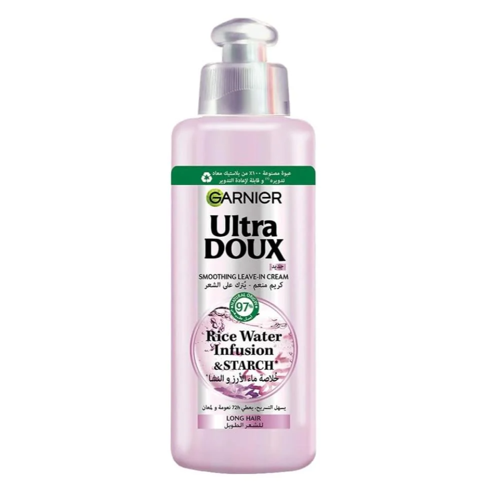 دللي شعرك مع كريم غارنييه الترا دو بخلاصة ماء الارز والنشا، المصمم خصيصًا لتقوية الشعر وتنعيمه. بفضل تركيبته الطبيعية المستوحاة من أسرار الجمال الآسيوية، يمنح شعرك التغذية والمرونة اللازمة، ليصبح أكثر صحة ولمعانًا بعد كل استخدام.