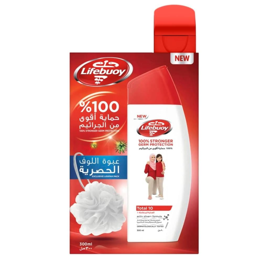 صابون سائل الاستحمام لايف بوي عناية ناعمة مع ليفة - 300 مل